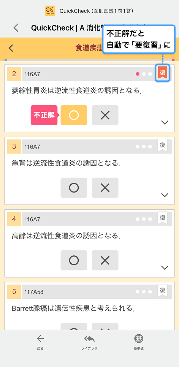 不正解した問題には,自動的に右上に「要復習」マークが付きます.