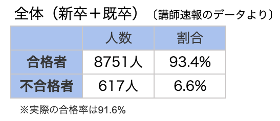 講師速報の集計上の合格率は93.4%と,実際の合格率よりも高くなっています.