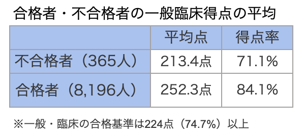 近年,一般・臨床問題の合格基準は75%前後となっています.今年は昨年の合格基準(73.7%)より上がり,74.7%と高い正答率を要求されました.