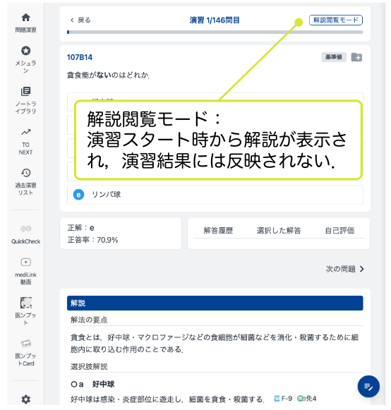 どんな機能があるか取りあえず試したい,という方には,mediLinkサイトでアカウントを作成するだけで,国試QBのA章(消化管)の問題・解説を閲覧することができます.