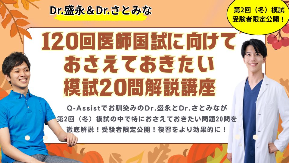 と題して,Dr.盛永&Dr.さとみなが,第2回(冬)模試の中で国試で差がつく特におさえておきたい問題20問を徹底解説!受験者限定で公開します!復習をより効果的に!