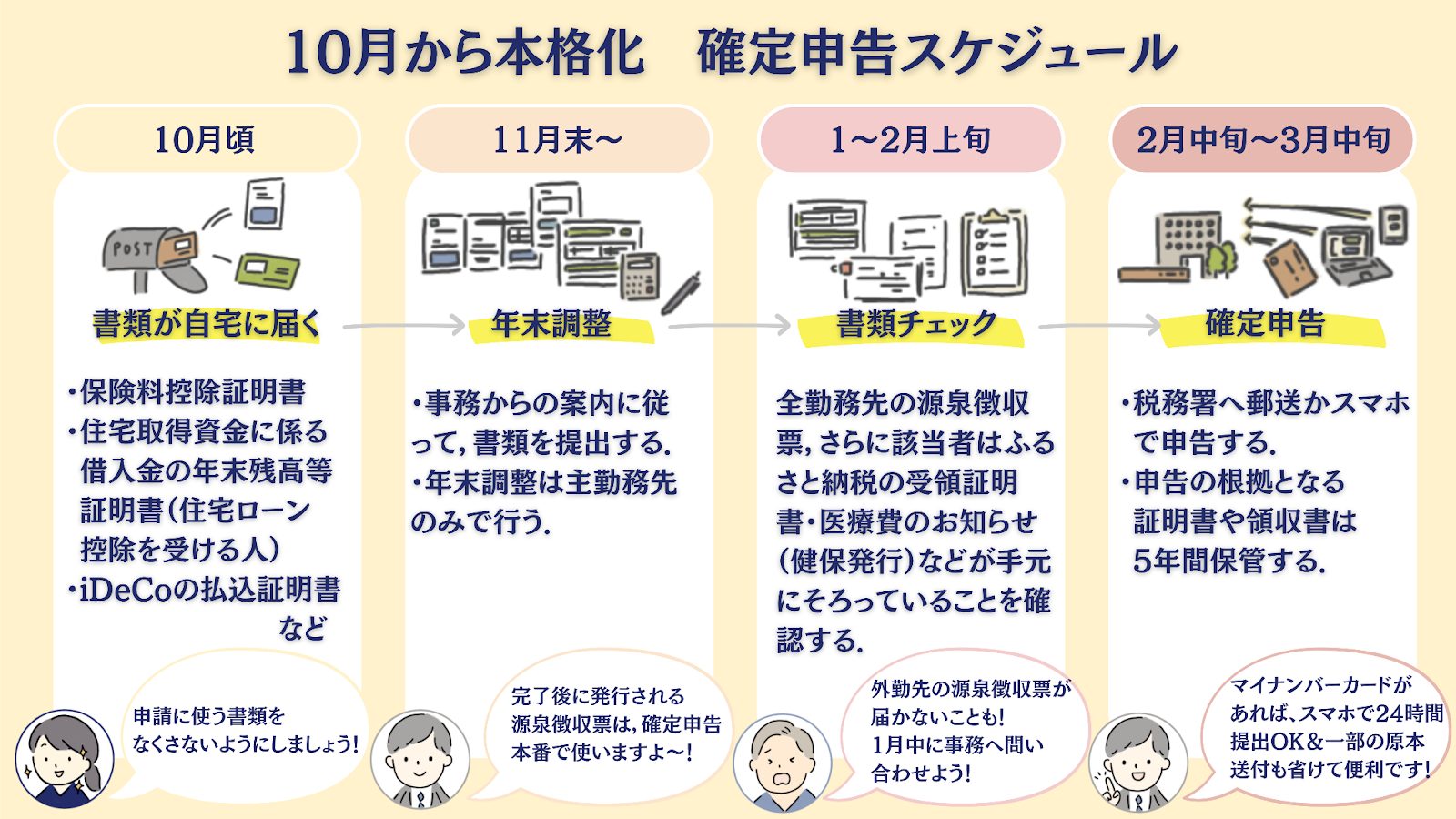 その上で,確定申告周りでやることが本格化するのは10月からです.ここから2月の確定申告書類の提出までにやることをまとめてみました.