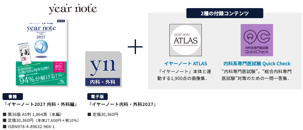 最新情報,特典が盛り沢山の『イヤーノート2027 内科・外科編』,書籍版のご購入はこちらから!