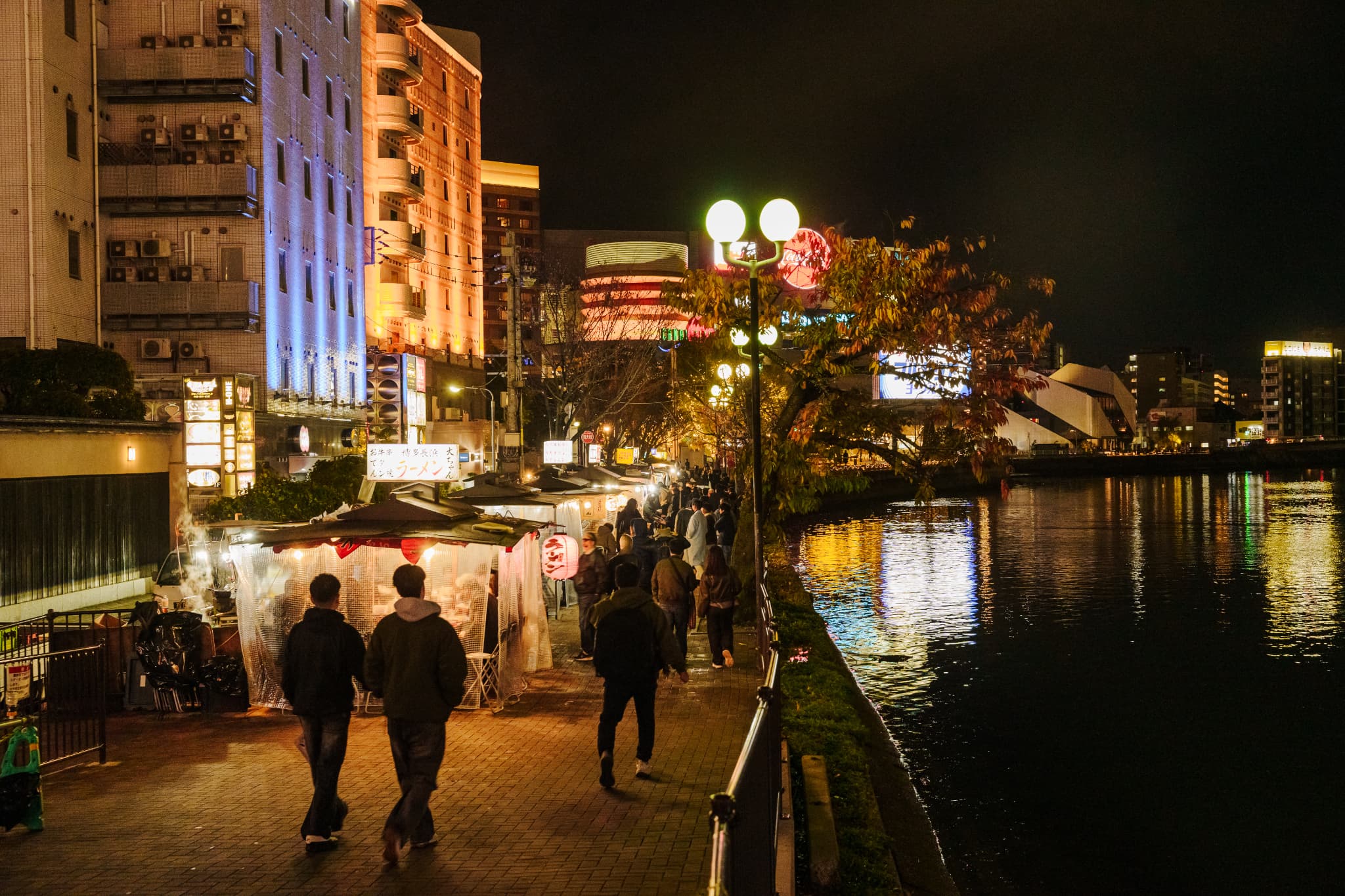 博多の飲み屋街として最初に名前が上がるのが中洲・川端エリアです.那珂川と博多川という2つの川に挟まれた文字通り「中洲」に位置する細長い歓楽街です。名物を楽しめる有名な飲食店が多く,屋台もたくさんあります.