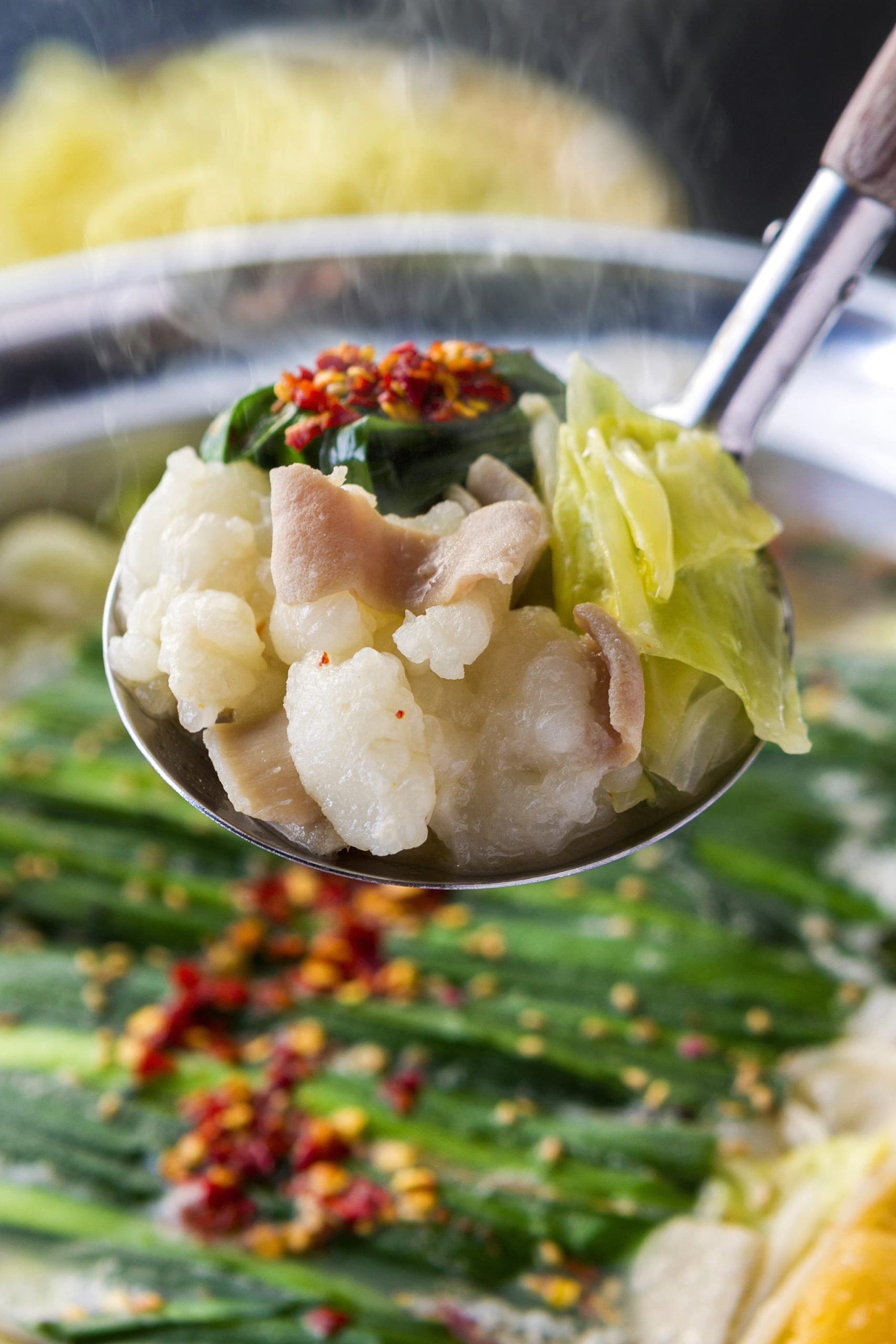 水炊きと並ぶ博多の鍋料理がモツ鍋です.醤油や味噌仕立てのスッキリしたスープでプリプリの牛ホルモンとたっぷりのニラを煮た鍋はホルモン好きにはたまらない味わいです.締めにラーメンやちゃんぽんを入れるのも定番で,この誘惑を断つのは至難の業.