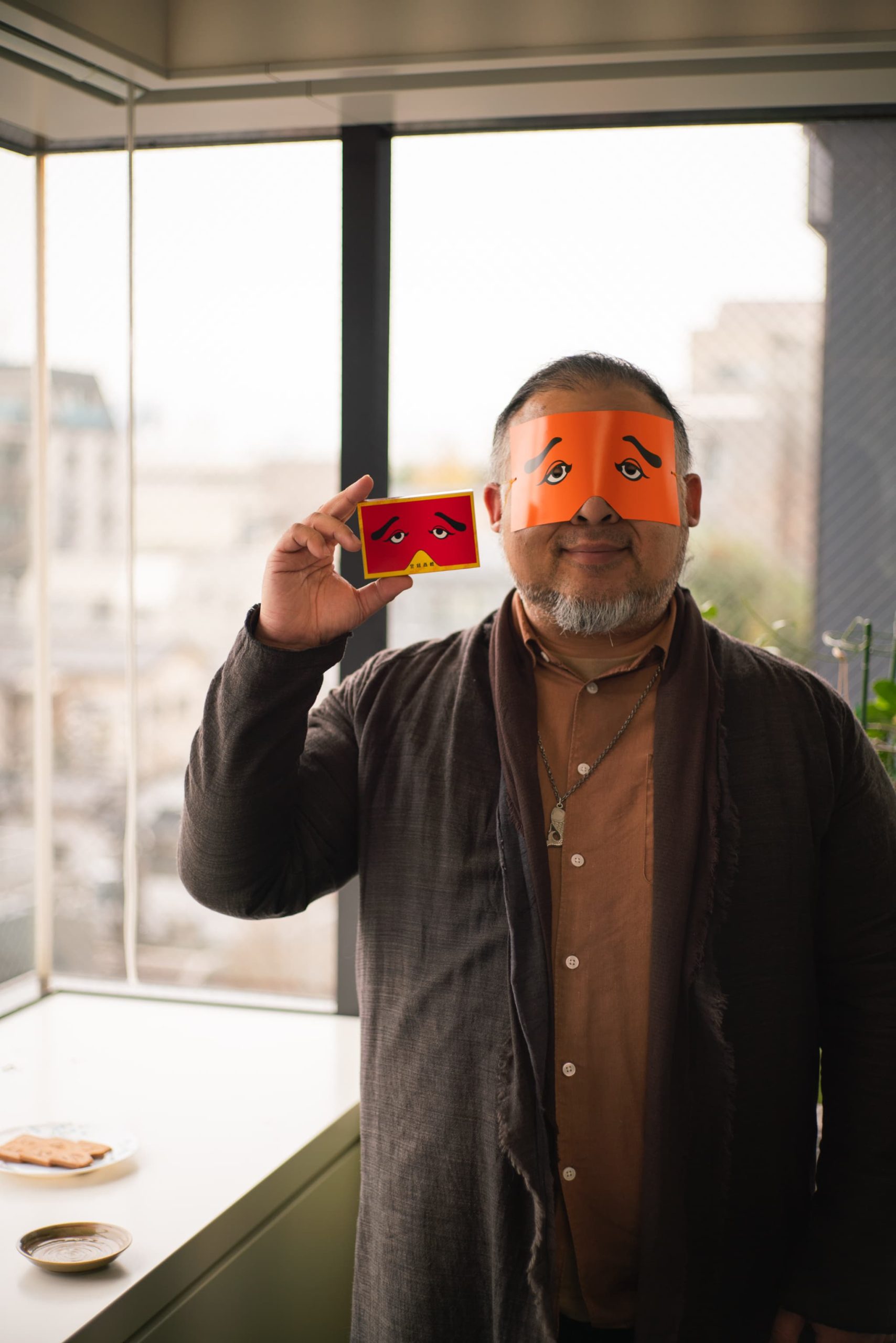 ユーモラスなお面がデザインされた卵と小麦粉のサクッとした甘いおせんべい.一度見たら忘れないお面のデザインに思わず頬がほころびます.博多仁和加(はかたにわか)という伝統芸能でつかうお面なのだとか.