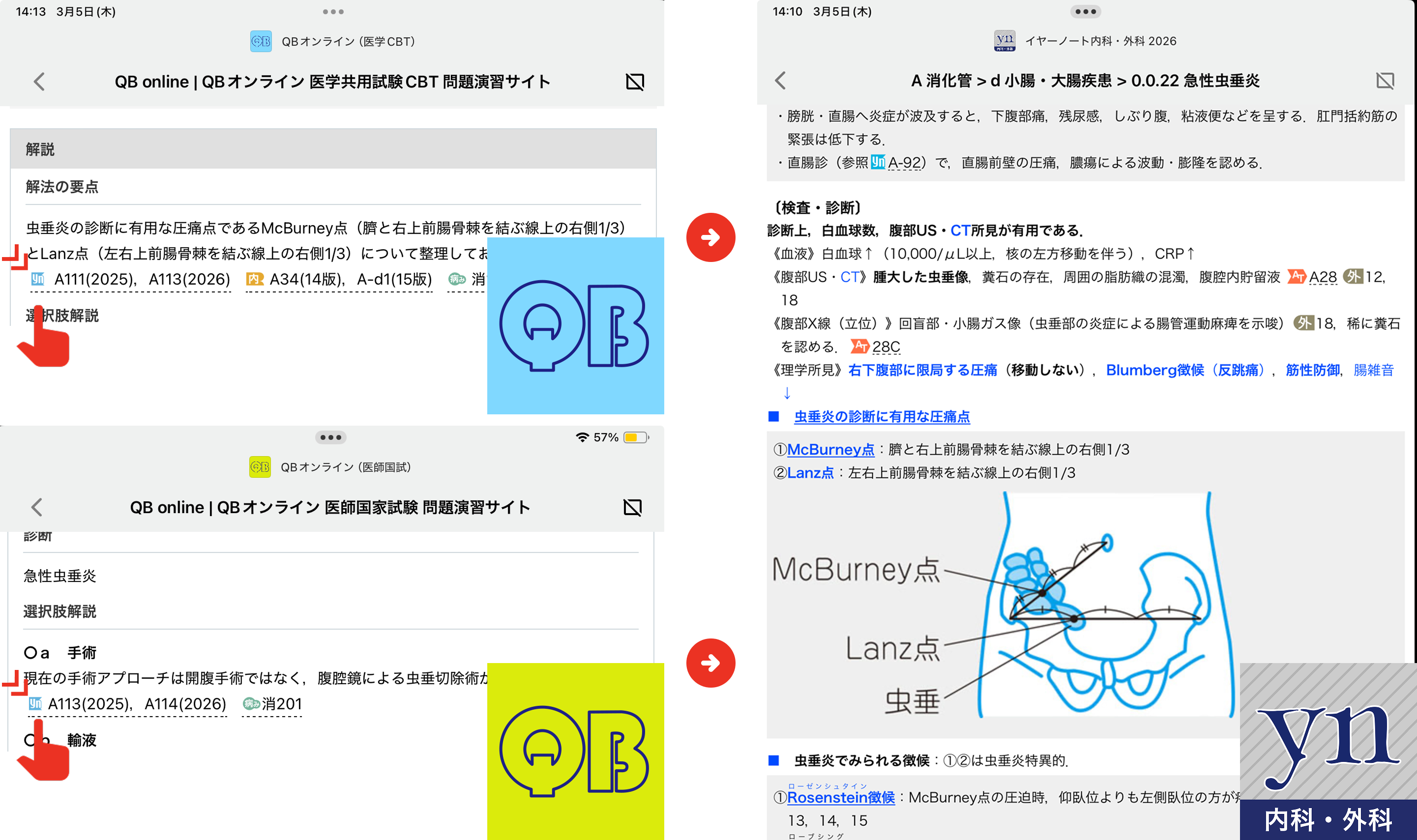 これを繰り返すと,次に同じテーマが出題された際,イヤーノートのページのレイアウトごと脳内に浮かぶようになります.また,QB(クエスチョン・バンク)を使っている場合,問題画面のリンクからイヤーノートの該当ページへ飛ぶ機能を活用するだけでも絶大な効果があります.