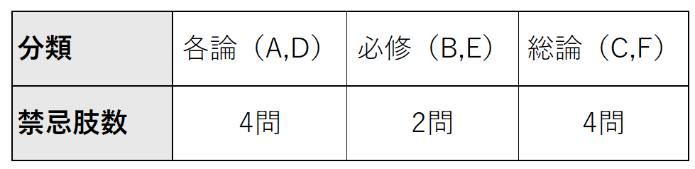 ・禁忌の分布(必修,総論,各論)
