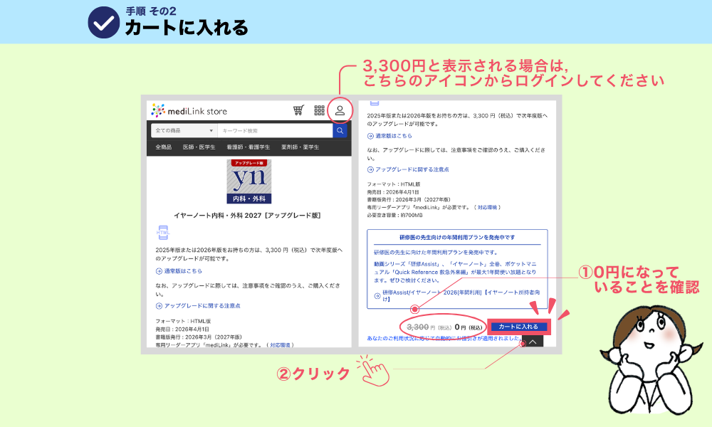※この時「3,300円」と表示されている場合は,mediLinkストアにログインしてからお試しください.
